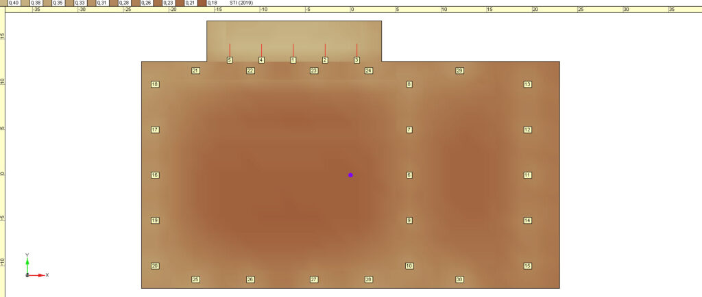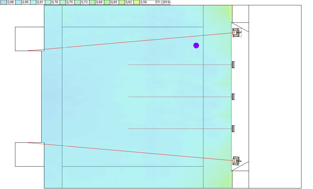 Výše uvedená tabulka je základním vodítkem pro osoby s rozhodovací pravomocí, protože převádí abstraktní technický parametr na konkrétní, měřitelné ukazatele výkonnosti. Hodnota 0,60-0,75 je považována za dobrou. V kontextu bezpečnosti je pro evakuační systémy zásadní vysoká hodnota STI, která znamená téměř stoprocentní srozumitelnost slov. Proto jako společnost nabízející audio řešení pro stadiony, hřiště a sportovní haly dbáme na to, aby konečné měření STI bylo prezentováno již ve fázi návrhu prostřednictvím softwarové simulace příslušného systému veřejného ozvučení. Proces návrhu a jeho prvky jsou podrobně popsány ZDE.