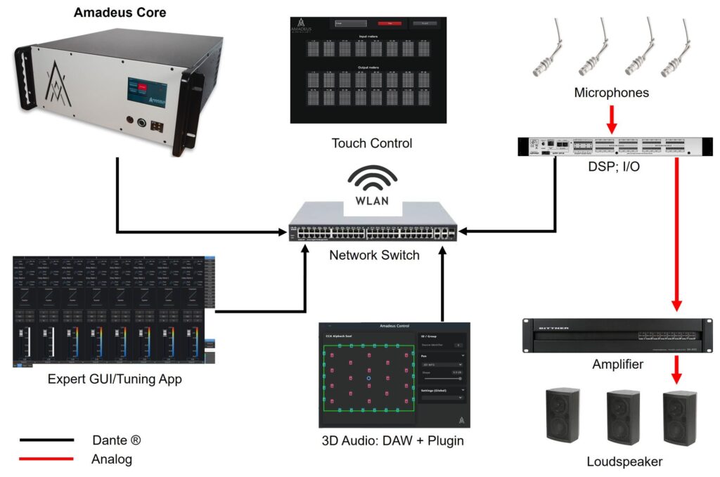 Niewątpliwą zaletą systemu AMADEUS jest możliwość jego integracji z dowolnym systemem nagłośnieniowym, instalacyjnym czy studyjnym każdej marki, np. L-Acoustics, Bose Professional, ATC Loudspeakers czy wiele innych. Nie ma też ograniczeń dotyczących urządzenia do sterowania czy zarządzania.
