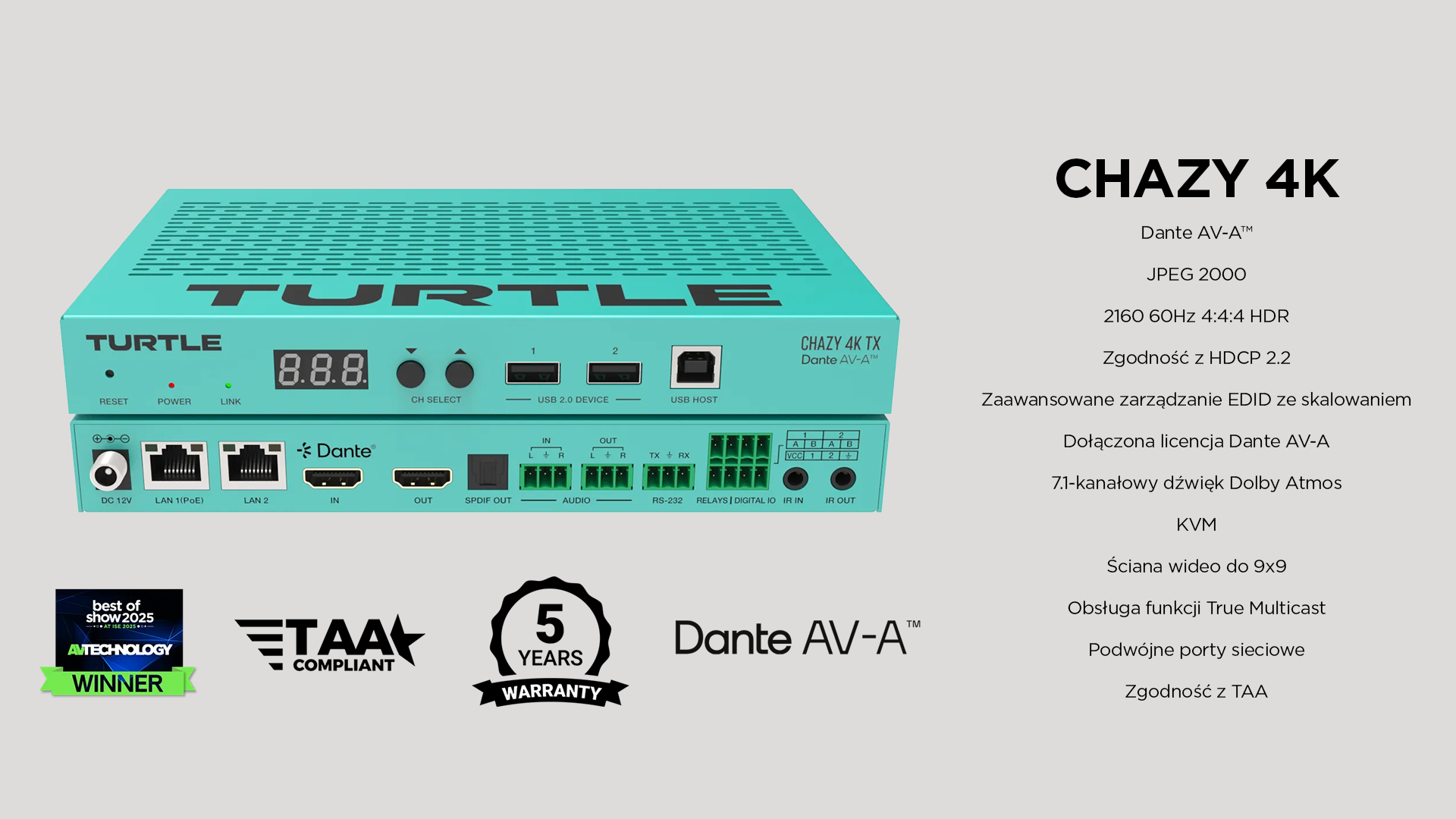 TURTLE CHAZY 4K - Dante AV-A™ i JPEG 2000