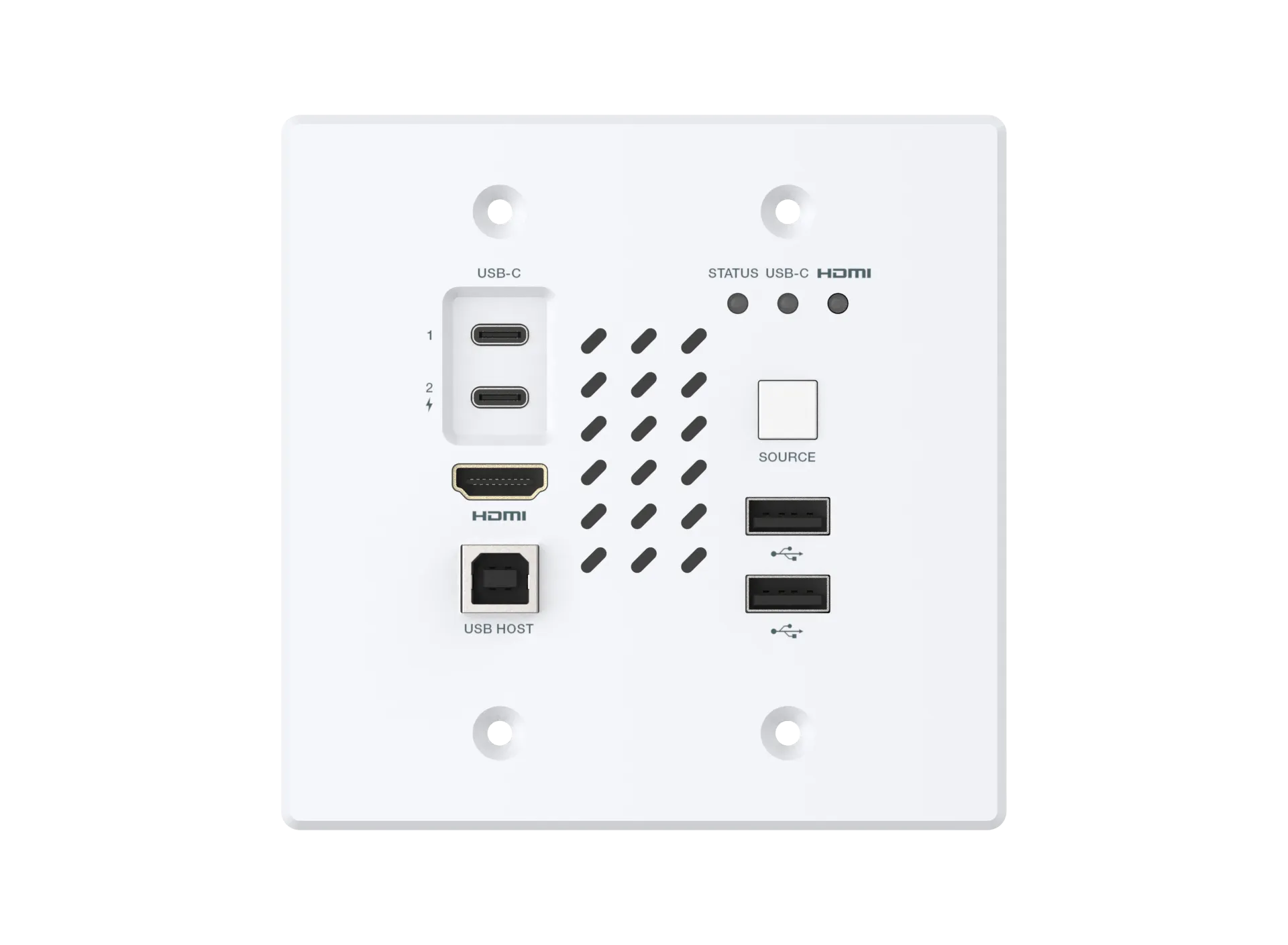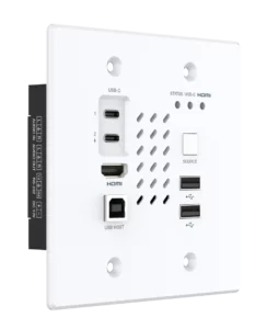 Płytka ścienna Decora Style Chazy 4K Tx oferuje zarówno HDMI, jak i USB-C video Tx, co czyni ją najlepszym rozwiązaniem do stołów konferencyjnych i ma przejście zasilania USB, dzięki czemu można zasilać laptopa, tablet lub inne urządzenie z wtyczki ściennej USB, jednocześnie zasilając Chazy przez PoE.